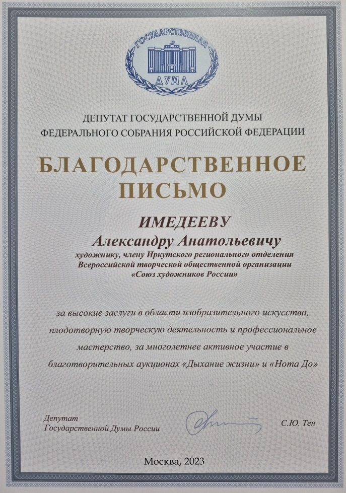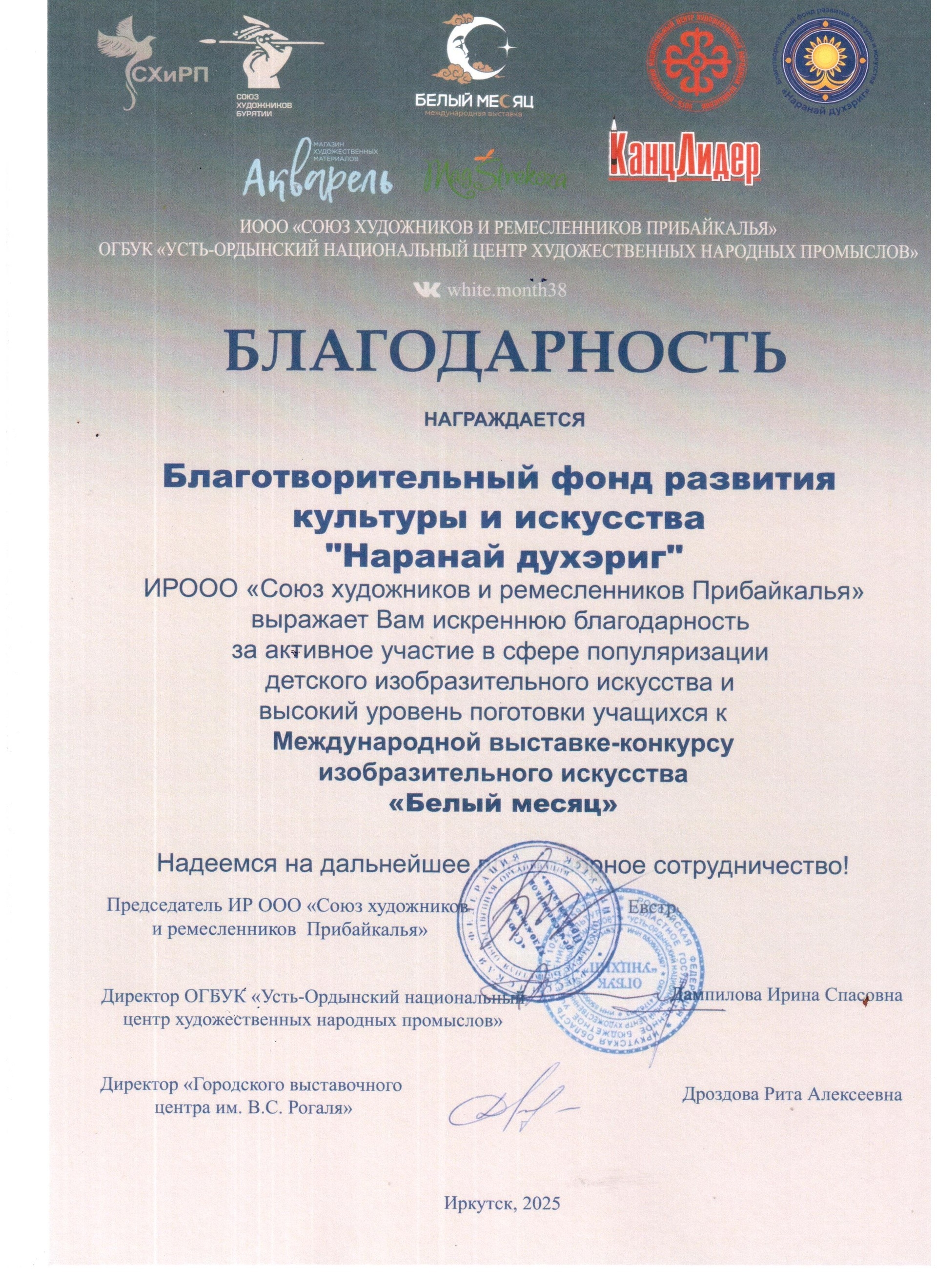 Для меня большая радость представить вашему вниманию благотворительный фонд «Наранай духэриг», на сегодняшний день, являющийся благоприятной объединяющей площадкой для художников и мастеров искусств, а также для всех активных граждан, которые верят в силу настоящего искусства.